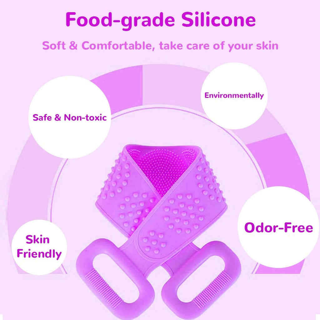 SILICONE BODY BACK SCRUBBER DOUBLE SIDE BATHING BRUSH FOR SKIN DEEP CLEANING WITH HOOK