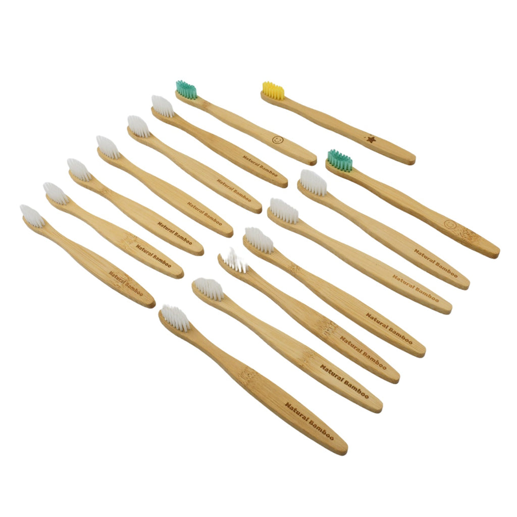 Bamboo Wooden Toothbrush Soft Toothbrush Wooden Child Bamboo Biodegradable Toothbrush, Manual Toothbrush for Adult, Kids (15 pcs set / With Round Box)