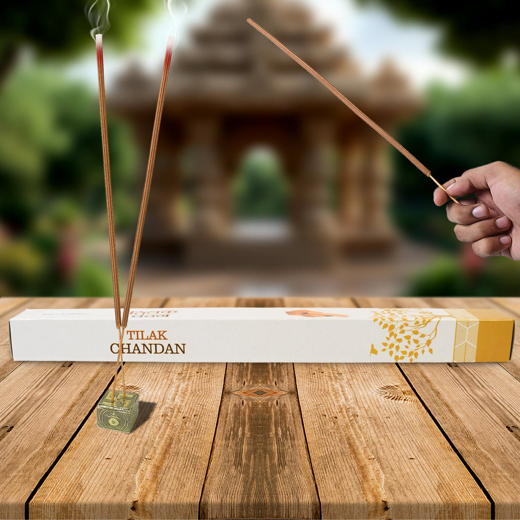 Big Tilak Chandan Premium Incense Sticks / Agarbatti for Everyday Use for Home, Office, Meditation and Pooja for Puja, & Other Festive Occassions, Agarbatti (10 Pcs Sticks / 40 Cm / Stand not included)