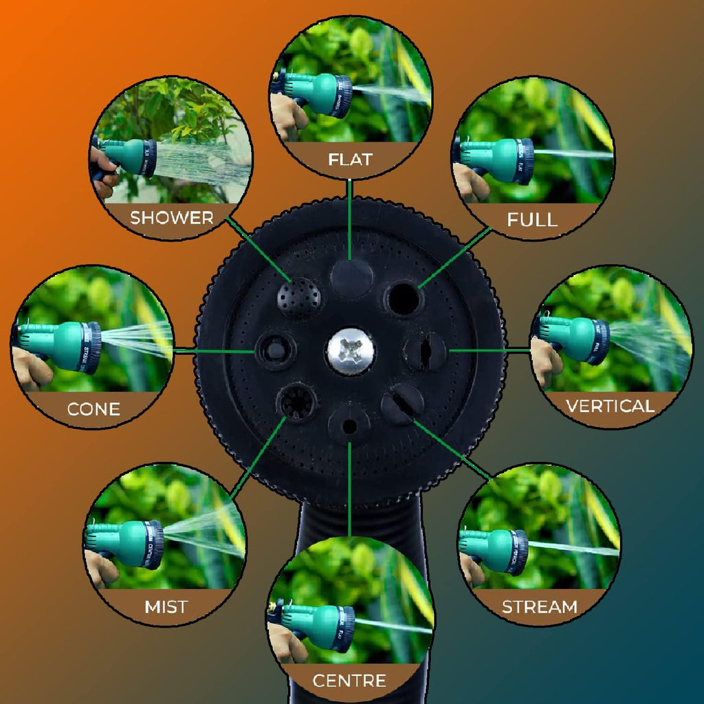 - 8 Pattern spray nozzle settings: garden nozzle in different types of watering range from fine shower, rinse, flat, soaker, cone, centre and mist, to pointed jet spray. The nozzle is clearly marked and easily triggered settings according to your needs